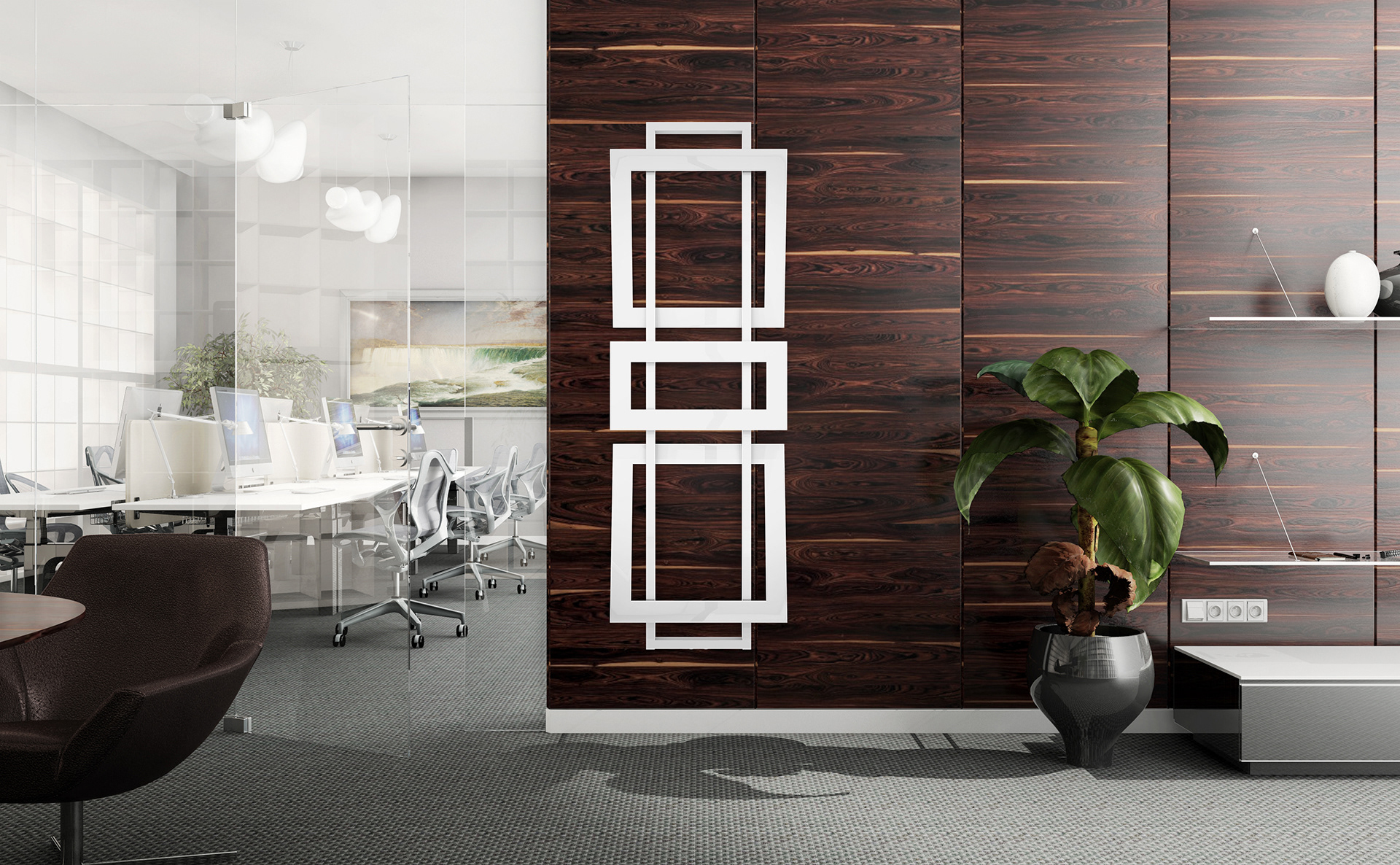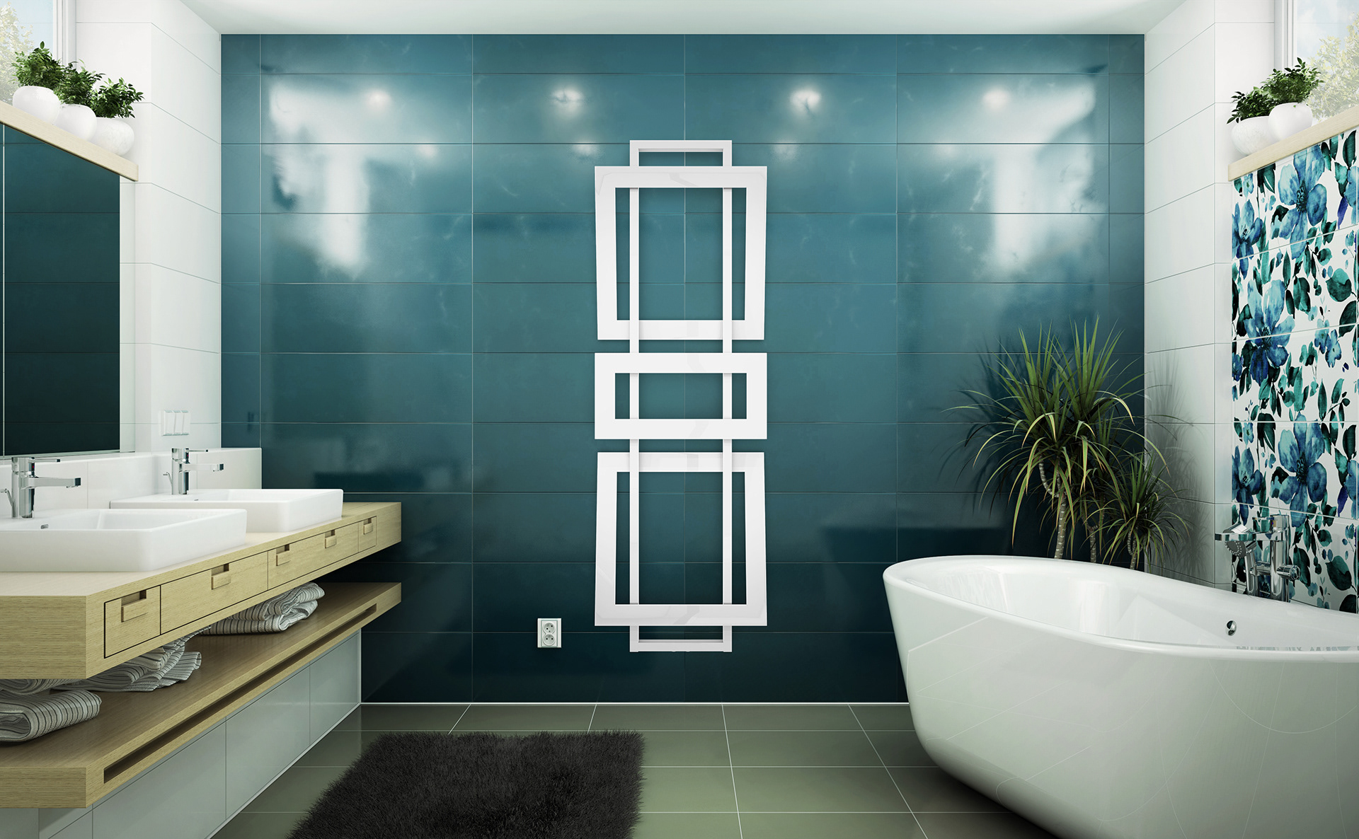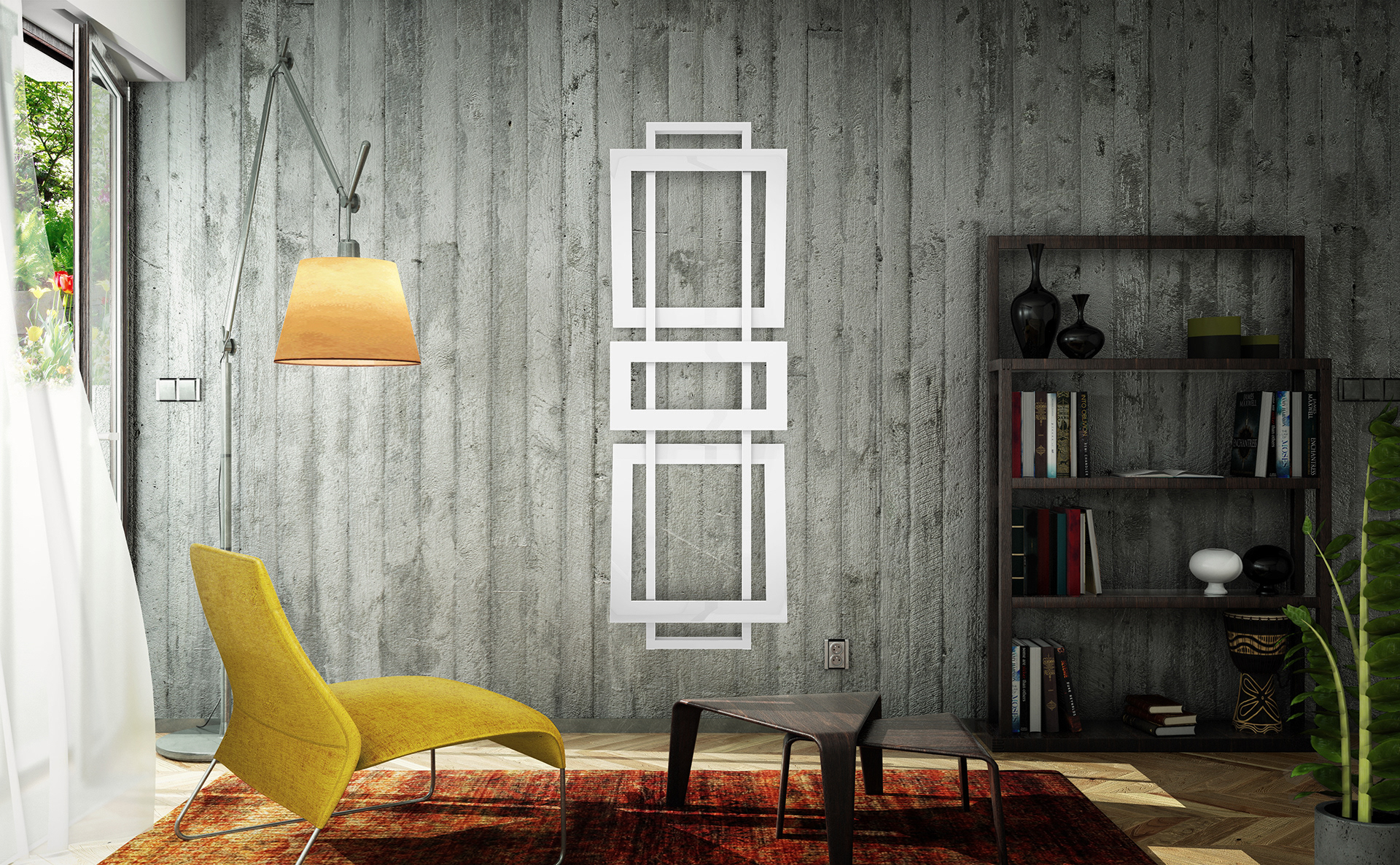 Návrh interiéru pro prezentaci moderních radiátorů v různém prostředí