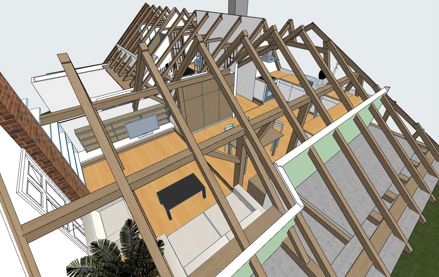 Cílem bylo zachovat stávající měřítko a dojem domu, a to především z ulice. Původní krov jsme ponechali a výška střechy se zvedla jen o tloušťku zateplení. Střechu jsme doplnili střešními okny a na jižní stranu směrem do zahrady jsme umístili velký vikýř, který zajistí dostatečnou světlou výšku v místnosti. Opravdovým oříškem bylo najít vhodné umístění pro schodiště a dispozici vymyslet tak, aby byla funkční a aby nikde nevznikaly problémy se šikminami, kde by mohlo dojít k bouchnutí do hlavy o trám nebo krokev. Přestavba půdy na obytný prostor - zvlášť když půdorys není úplně pravidelný - je poměrně složitá záležitost, ale odměnou je radost, když se podaří najít optimální řešení a vznikne originální bydlení s géniem loci.