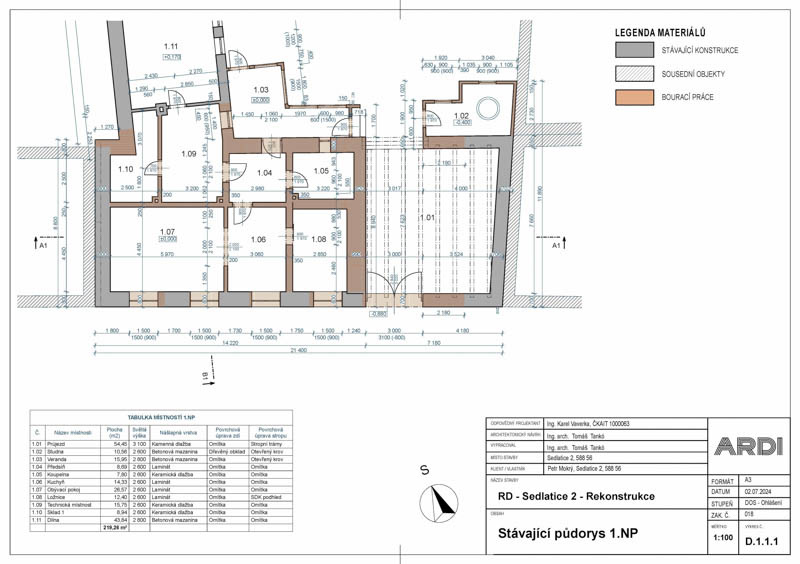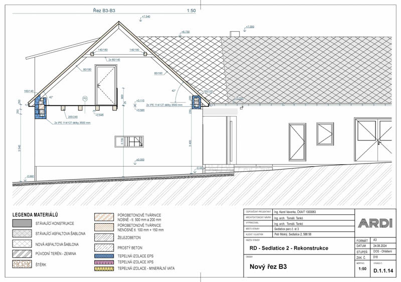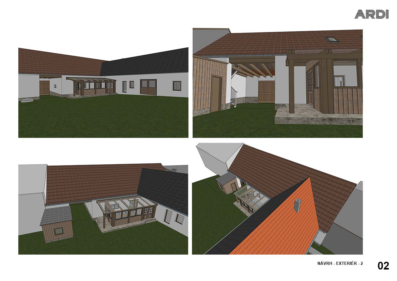 Tento projekt byl opravdu specifický. Poměrně rychle a svižně jsme se s klientem shodli na dispozici a celkovém konceptu řešení. Největší oříšek ale představovalo navrhnout projekt tak, abychom splnili podmínky dotačního titulu Oprav dům po babičce, moc nenaštvali sousedy, vyhověli všem požadavkům stavebního úřadu a zároveň – pokud možno – zachovali pro zemědělskou usedlost krásné číslo popisné 2.