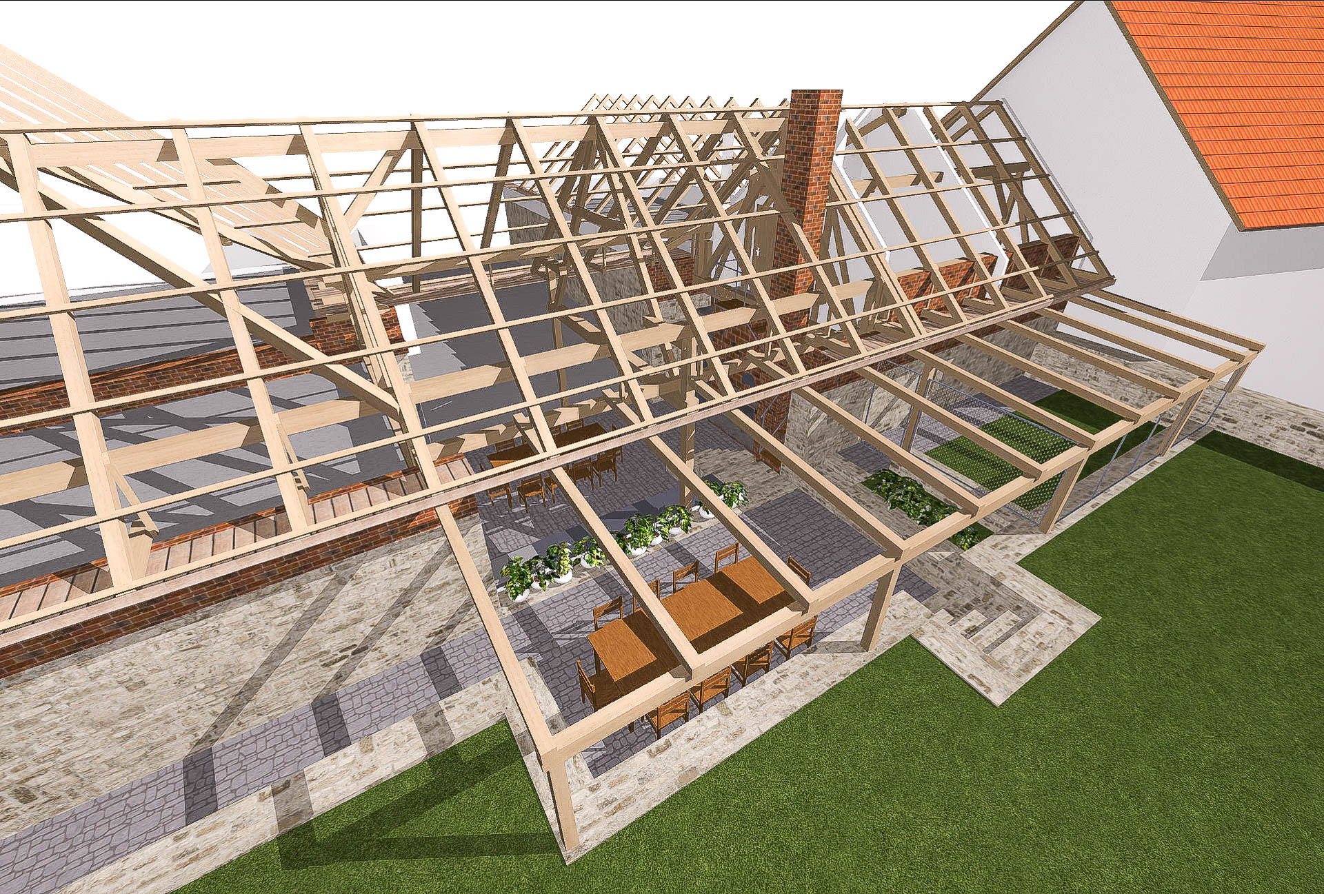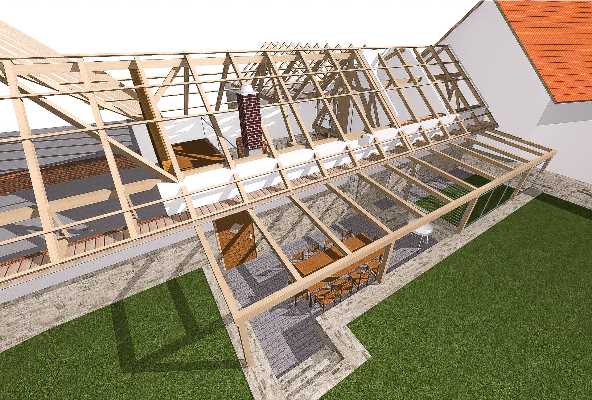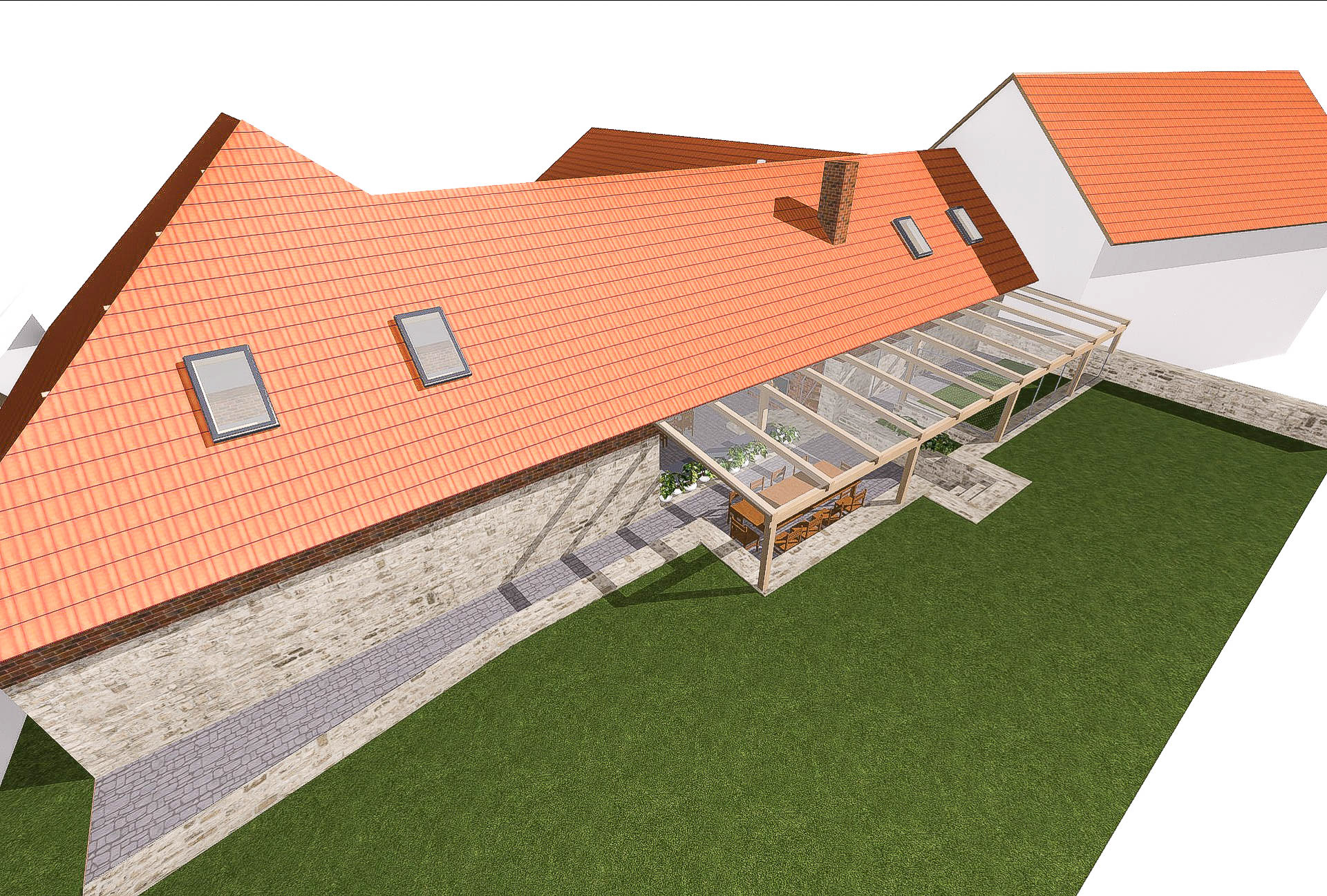 Celkový koncept je o spojení tradice a moderní funkčnosti – místo pro společné chvíle s rodinou a přáteli, které je zároveň praktické, útulné a v harmonii s okolní zahradou.